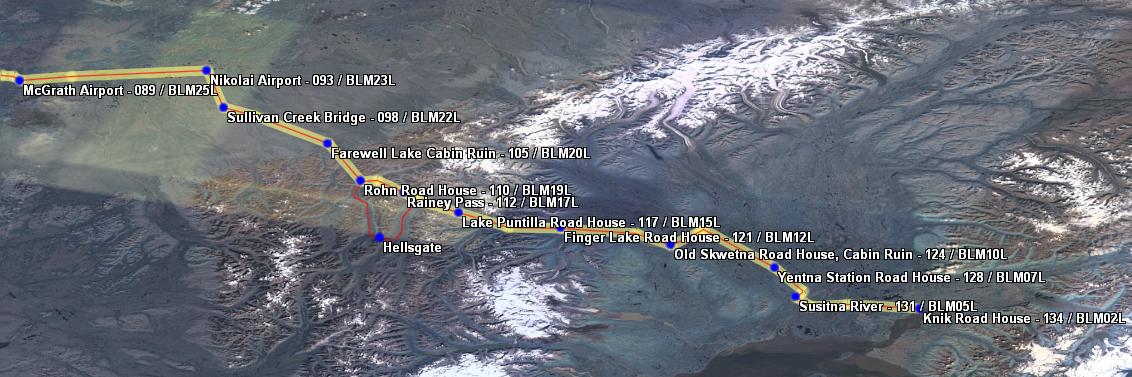 | 1 | Wasilla Iditarod | Visitors Center | 61 33' 42.1" | 149 28' 41.9" |